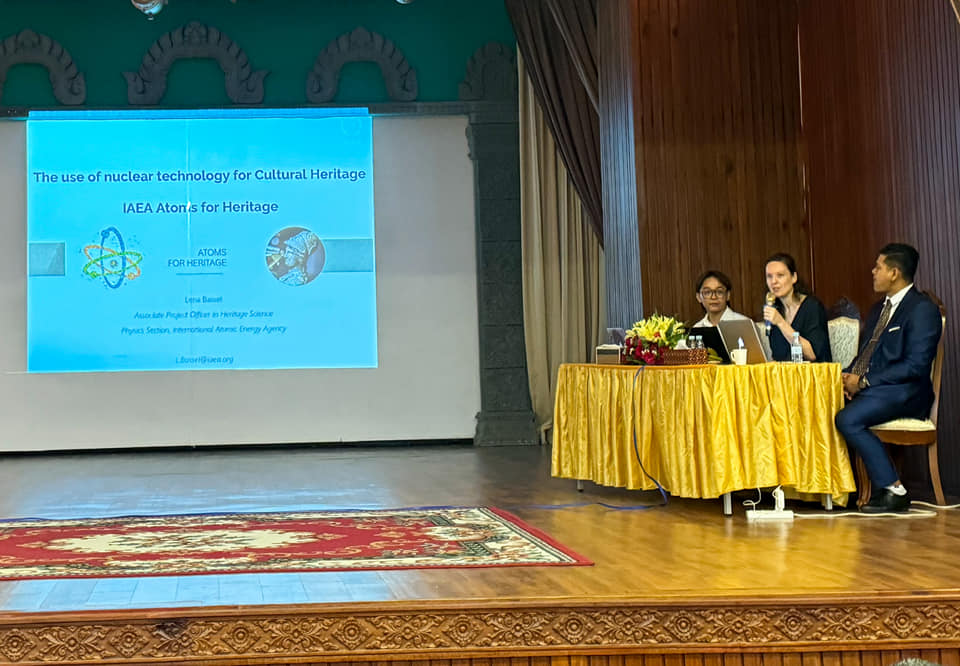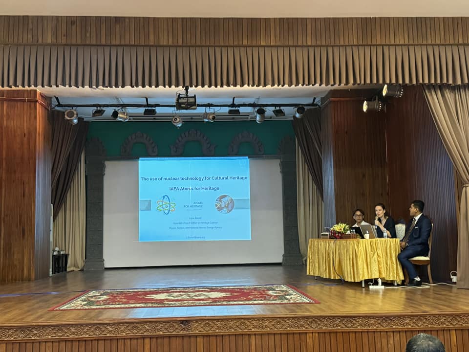ទី១ បទបង្ហាញស្ដីពី ការប្រើប្រាស់បច្ចេកវិទ្យាបរមាណូ ក្នុងវិស័យបេតិកភណ្ឌ ដោយលោកស្រី LENA BASSEL អនុប្រធានគម្រោងវិទ្យាសាស្រ្ដបេតិកភណ្ឌនៃស្ថាប័នទីភ្នាក់ងារបរមាណូ អន្តរជាតិ(IAEA)
