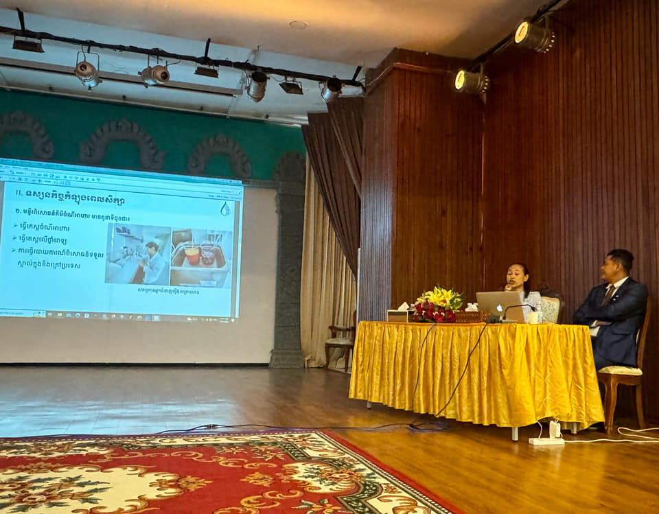 ទី៤ បទបង្ហាញស្ដីពី បទពិសោធនិងវិធីសាស្រ្ដក្នុងការវិភាគ និងជួសជុលក្រណាត់ ដោយលោកស្រី ខូ ចិន្តា មន្រ្ដីនាយកដ្ឋានសារមន្ទីរ។