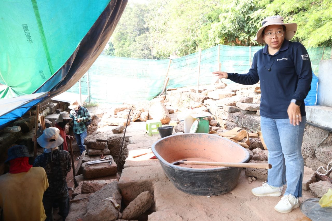 អ្នកបុរាណវិទ្យា និងជាក្រុមការងារបច្ចេកទេសនាយកដ្ឋានអភិរក្សប្រាសាទ និងបុរាណវិទ្យា ប្រចាំការនៅការដ្ឋានជួសជុលព្រះលានជល់ដំរីទីតាំងA អ្នកស្រី សៀង សុផានី ឱ្យដឹងថាការងារដែលសម្រេចនៅទីតាំងA បានបញ្ចប់ការងារកំណាយស្រាវជ្រាវបែបបុរាណវិទ្យា និងជួសជុលសម្រាលថ្មបាយក្រៀមផ្នែកខាងលើដែលស្រុត ព្រមទាំងបានពង្រីកការជួសជុលកម្រាលនៅទិសខាងត្បូងប្រវែង៣ម៉ែត្របន្ថែមទៀតនូវផ្នែកដែលស្រុតបញ្ចៀសការហូរច្រោះដោយទឹកភ្លៀង និងជួសជុលពង្រឹងគ្រឹះ ហើយរៀបជញ្ជាំងថ្មភក់ផ្នែកខាងកើតនៃព្រះលានជល់ដំរីបានចំនួន៥រួត។