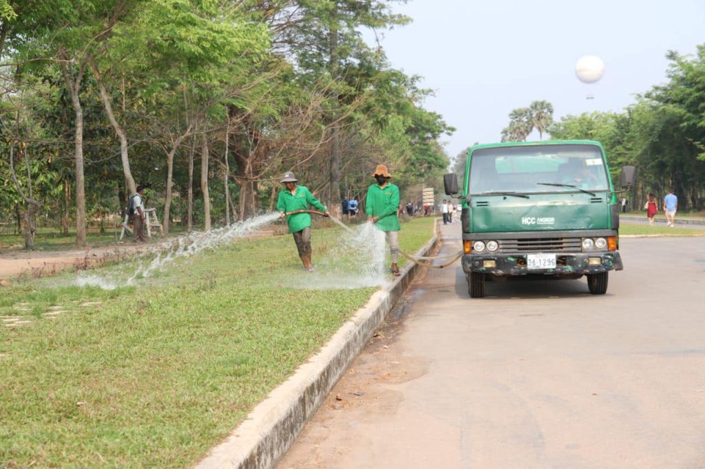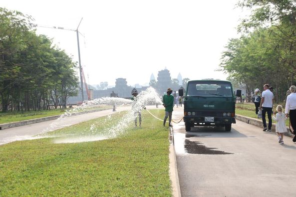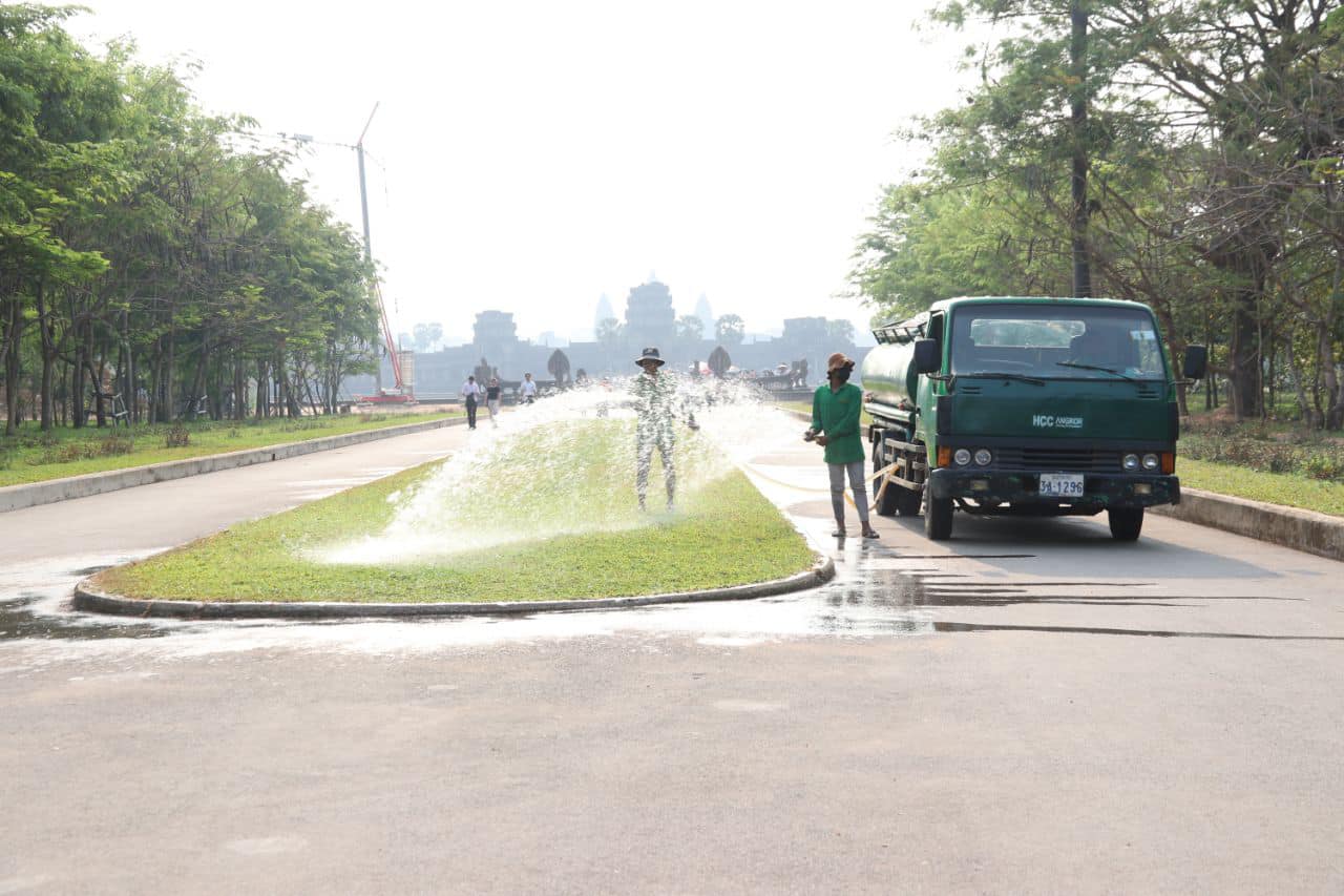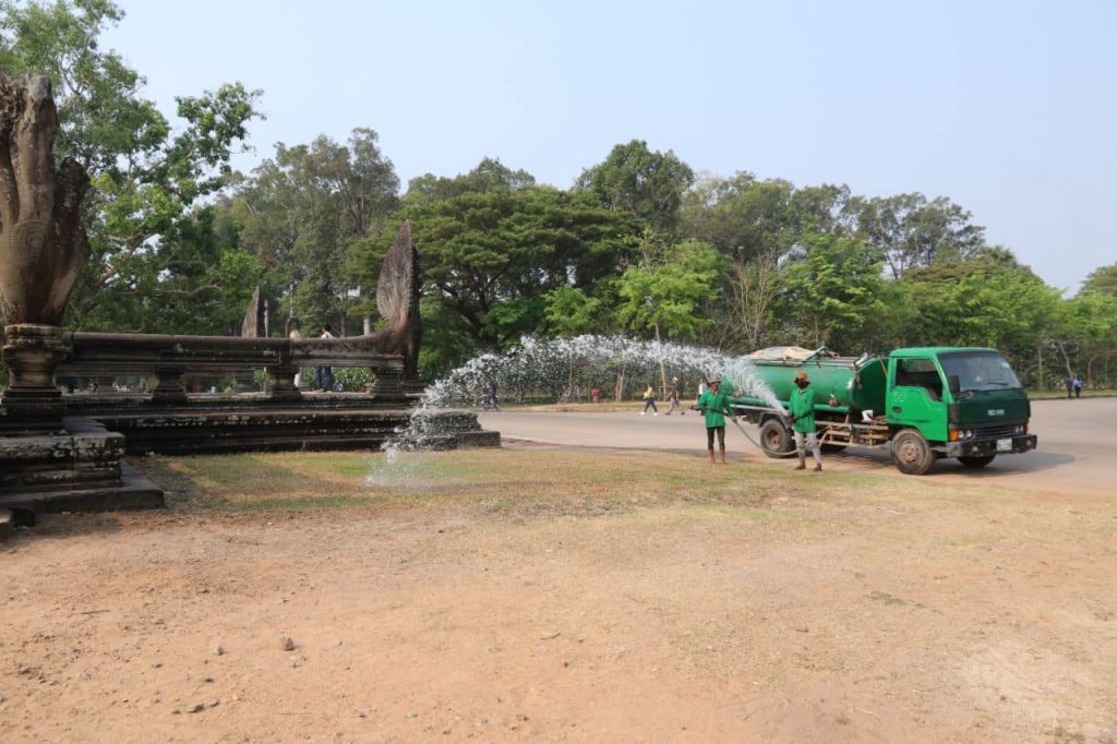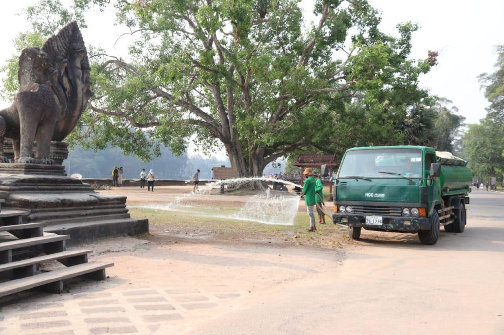 រដូវប្រាំងចូលមកដល់ បានធ្វើឱ្យស្មៅនិងរុក្ខជាតិមួយចំនួនក្រៀមស្វិតស្រពោននៅក្នុងតំបន់រមណីយដ្ឋានអង្គរ ប៉ុន្តែទោះជាយ៉ាងណា ក៏អាជ្ញាធរជាតិអប្សរាបានប្រឹងប្រែងថែទាំស្រោចស្រពស្មៅនៅតាមសួនកសិន្ធុប្រាសាទអង្គរវត្តឱ្យនៅតែមានពណ៌បៃតង។ ក្នុងនោះដែរ ចំពោះវាលស្មៅនៅក្នុងបរិវេណប្រាសាទអង្គរវត្ត ក៏អាជ្ញាធរជាតិអប្សរា បានរៀបចំប្រព័ន្ធស្រោចស្រពវាលស្មៅទាំងនោះផងដែរ។