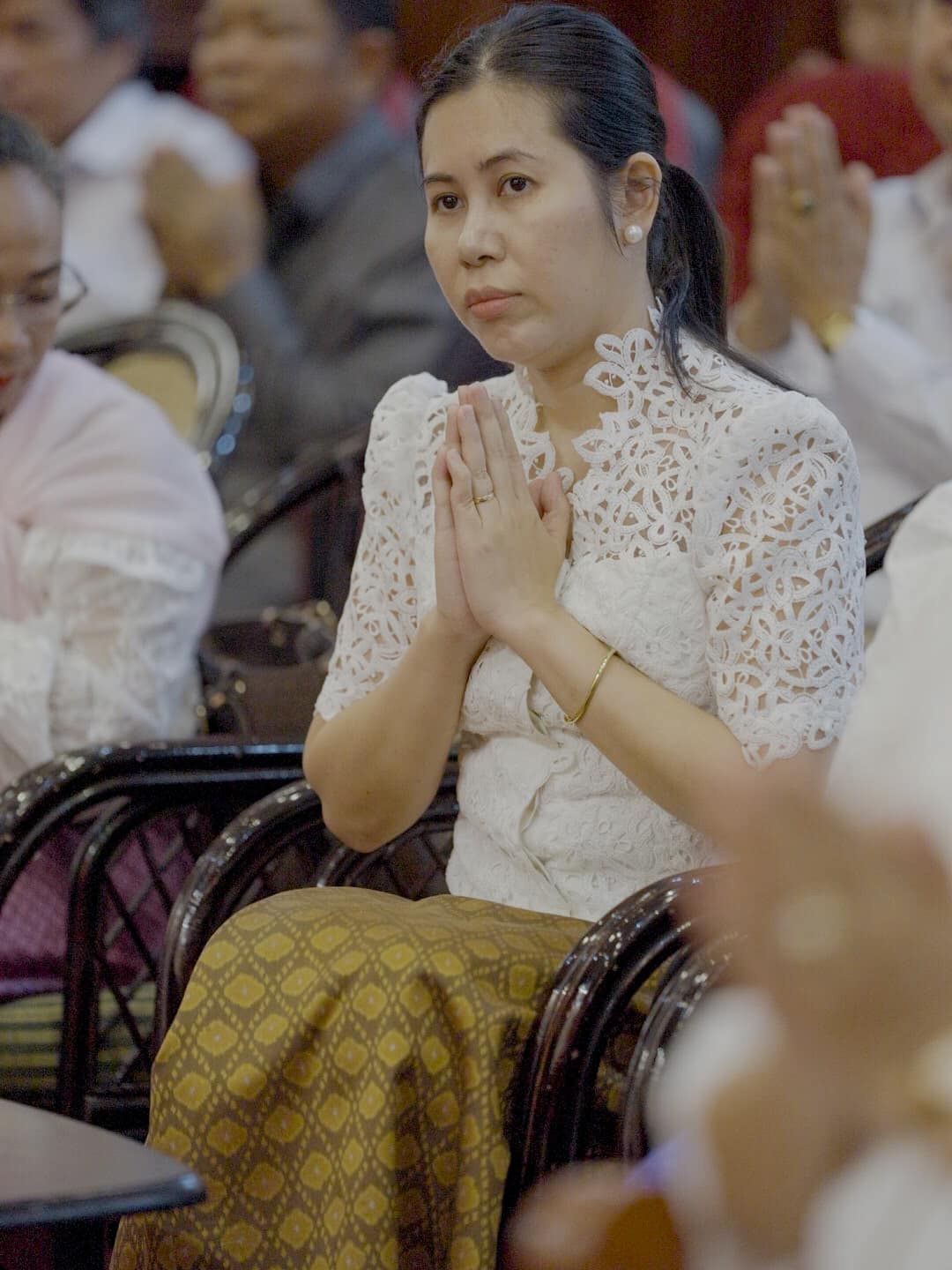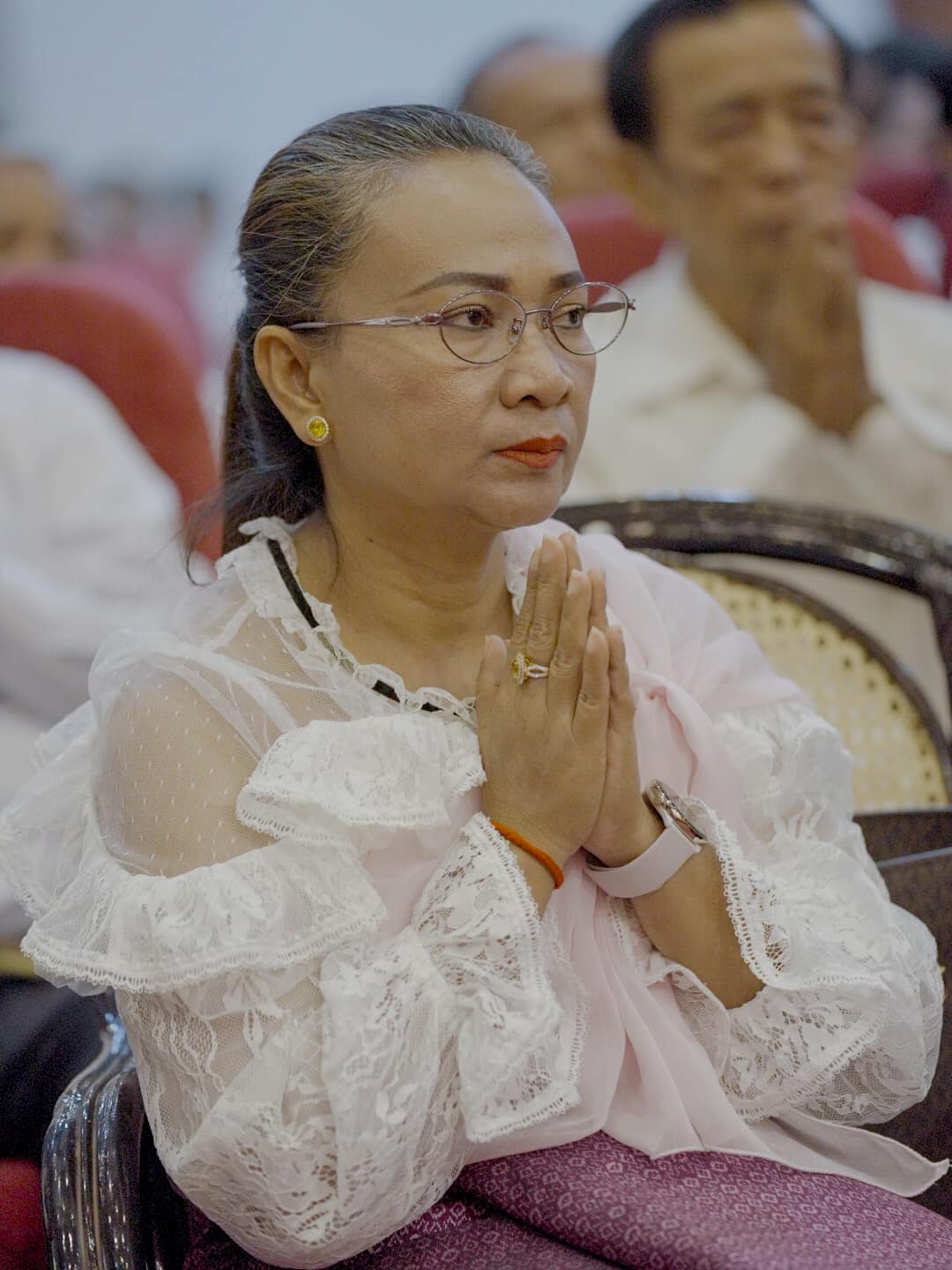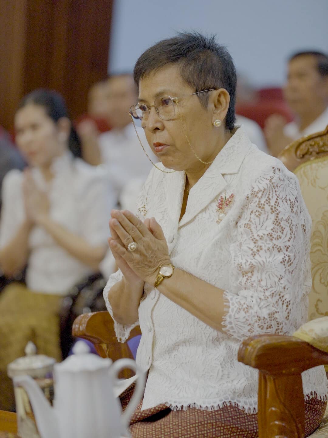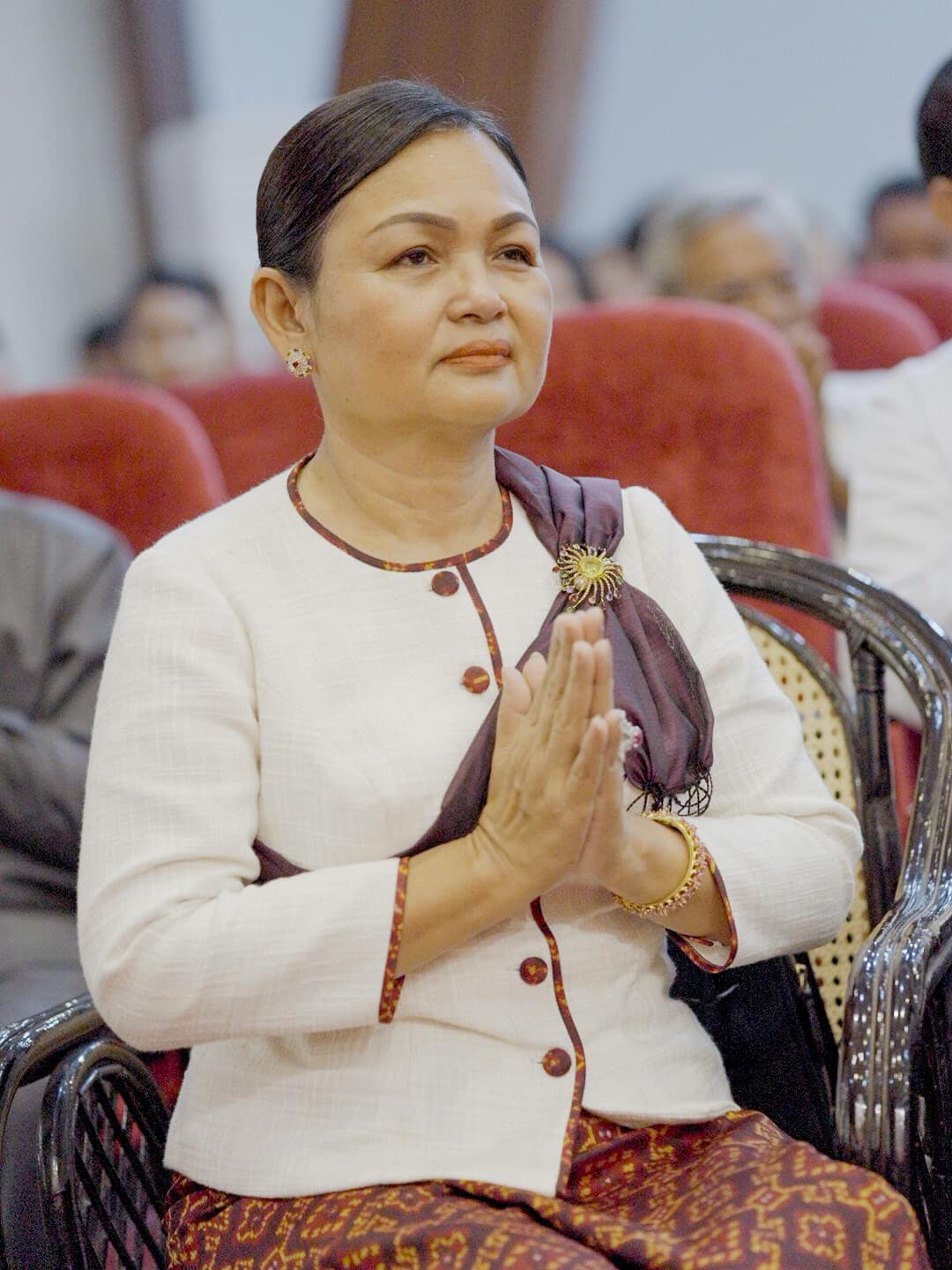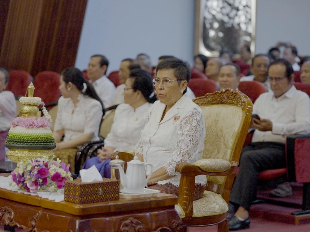 លោកជំទាវបណ្ឌិតសភាចារ្យ បានសម្តែងនូវក្តីរីករាយក្នុងឱកាសពិធីសូត្រមន្តចម្រើនព្រះបរិត្ត និងបានជួបជុំជាមួយមន្ត្រីរាជការ សមាជិក សមាជិកា ក្រោមឱវាទ ដើម្បីអបអរសាទរពិធីបុណ្យចូលឆ្នាំថ្មី ប្រពៃណីជាតិ ដែលនឹងឈានមកដល់នាពេលខាងមុខនេះ និងដើម្បីបង្សុកូលឧទ្ទិសជូនដល់វិញ្ញាណក្ខន្ធបុព្វបុរស និងមន្ត្រីរាជការ ដែលមានស្នាដៃ ចំពោះស្ថាប័ន ហើយបានបូជាអាយុជីវិត ដើម្បីបុព្វហេតុជាតិមាតុភូមិ។ ក្នុងឱកាសដ៏មង្គលនេះ ក្នុងនាមថ្នាក់ដឹកនាំ និងជាមន្ត្រីរាជការនៃក្រសួងវប្បធម៌និងវិចិត្រសិល្ប: សូមថ្វាយព្រះរាជសព្ទសាធុការពរបវរមហាប្រសើរគោរពថ្វាយចំពោះ ព្រះករុណា ព្រះបាទសម្តេចព្រះបរមនាថ នរោត្តម សីហមុនី ព្រះមហាក្សត្រ នៃព្រះរាជាណាចក្រកម្ពុជា ជាទីសក្ការៈដ៏ខ្ពង់ខ្ពស់បំផុត និងសម្តេចព្រះមហាក្សត្រី នរោត្តម មុនីនាថ សីហនុ ព្រះវររាជមាតាជាតិខ្មែរ សូមព្រះអង្គទាំងទ្វេ មានព្រះជន្មាយុយឺនយូរជាងរយព្រះវស្សា មានព្រះរាជសុខភាពល្អបរិបូរណ៌ ព្រះកាយពលមាំមួន ព្រះបញ្ញាញាណភ្លឺថ្លា ដើម្បីគង់ប្រថាប់ នៅក្នុងព្រះបរមសិរីរាជសម្បត្តិ ជាម្លប់ដ៏ត្រជាក់ត្រជុំ សុខដុមរមនា របស់ប្រជារាស្ត្រខ្មែរ ជាកូនចៅ ចៅទួត ជានិច្ចនិរន្តរ៍តរៀងទៅ។