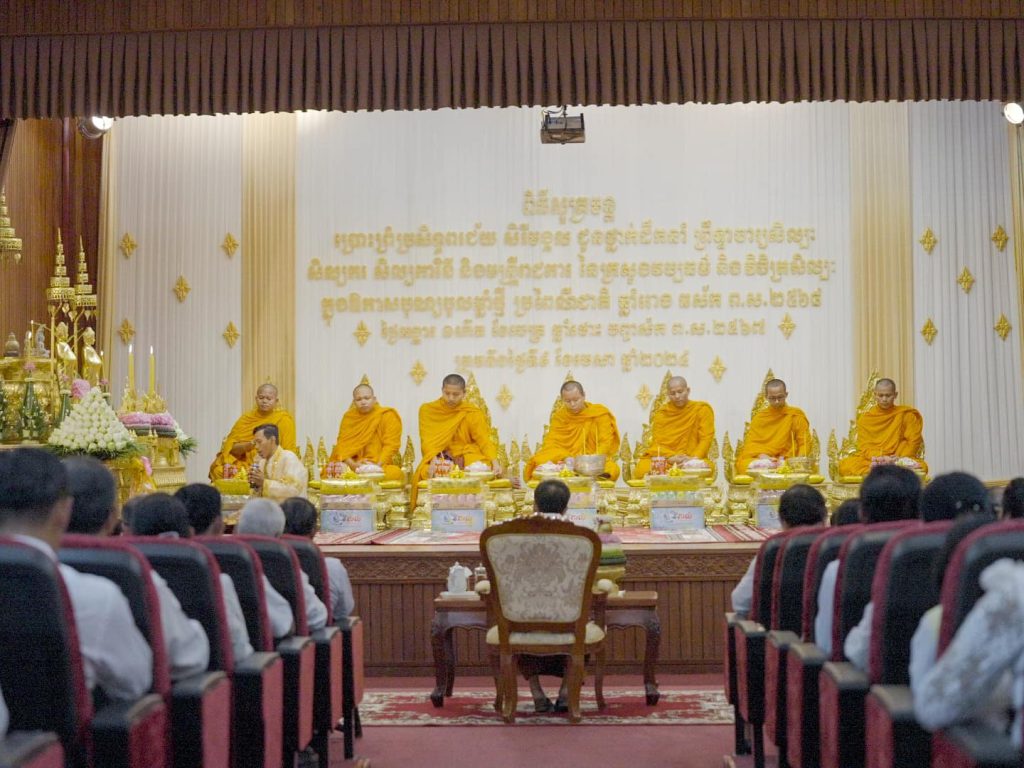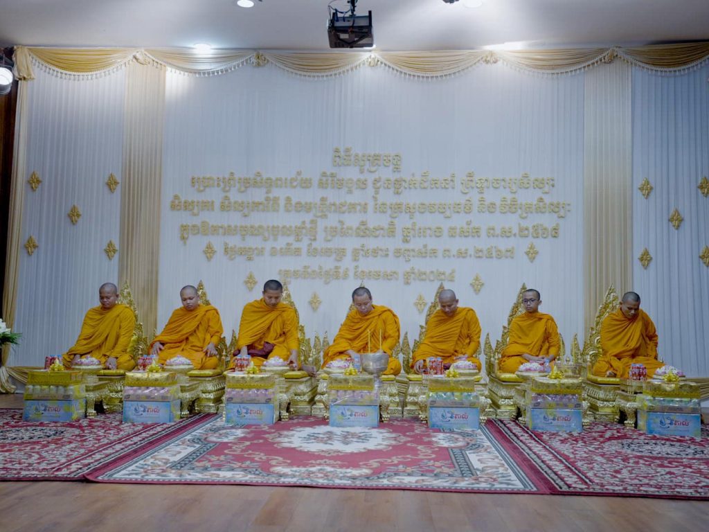 ក្នុងឱកាសត្រៀមទទួលអំណរសាទរពិធីបុណ្យចូលឆ្នាំថ្មី ប្រពៃណីជាតិខ្មែរ ឆ្នាំរោង ឆស័ក ព.ស. ២៥៦៧ គ.ស២០២៤ ដែលនឹងឈានមកដល់នាពេលឆាប់ៗខាងមុខនេះ នៅរសៀលថ្ងៃទី៩ ខែមេសា ឆ្នាំ២០២៤ លោកជំទាវបណ្ឌិតសភាចារ្យ ភឿង សកុណា រដ្ឋមន្រ្តីក្រសួងវប្បធម៌និងវិចិត្រសិល្ប: ព្រមទាំងឯកឧត្តម លោកជំទាវ ជាថ្នាក់ដឹកនាំ មន្ត្រីរាជការក្រោមឱវាទ បាននិមន្តព្រះសង្ឃ ដើម្បីសូត្រមន្ត ចម្រើនព្រះបរិត្ត ជម្រុះនូវឧបទ្រពចង្រៃក្នុងឆ្នាំចាស់ និងទទួលនូវពរជ័យសិរីមង្គលពីទេវតាឆ្នាំថ្មី។