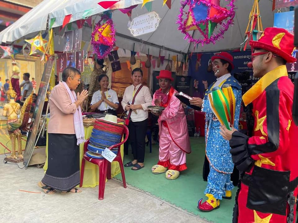 នាឱកាសនោះ លោកជំទាវបណ្ឌិតសភាចារ្យរដ្ឋមន្ត្រី ក៏បានអញ្ជើញទស្សនាស្តង់ពិព័រណ៍សាលាជំនាញទាំង៥ ស្តង់ទទួលការបរិច្ចាគសៀវភៅ នៃការិយាល័យបណ្ណាល័យ ព្រមទាំងស្តង់សិប្បកម្មនានាដែលបានរៀបចំតាំងបង្ហាញនៅក្នុងកម្មវិធី ព្រមទាំងបានចូលរួមរីករាយកម្សាន្ត ប្រកបដោយភាពស្និទ្ធស្នាល ស្នាមញញឹម ជាមួយមហាជននិងសិស្សបន្តវេនផ្នែកសិល្ប: វប្បធម៌ នៅសាលាមធ្យមវិចិត្រសិល្បៈ ដើម្បីអបអរសាទរពិធីបុណ្យចូលឆ្នាំថ្មី ប្រពៃណីជាតិយើង។