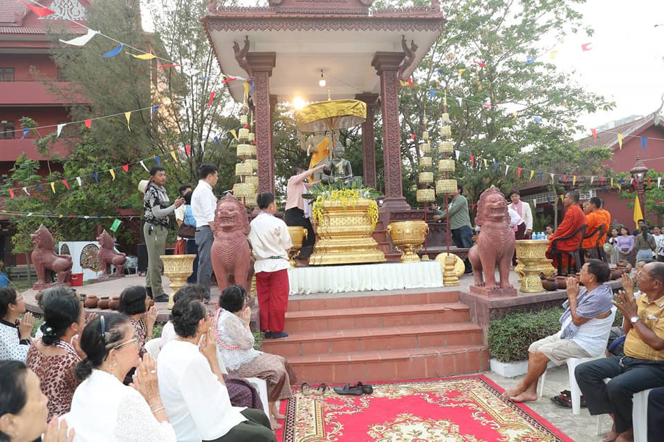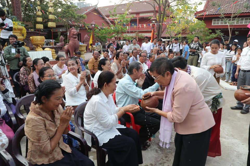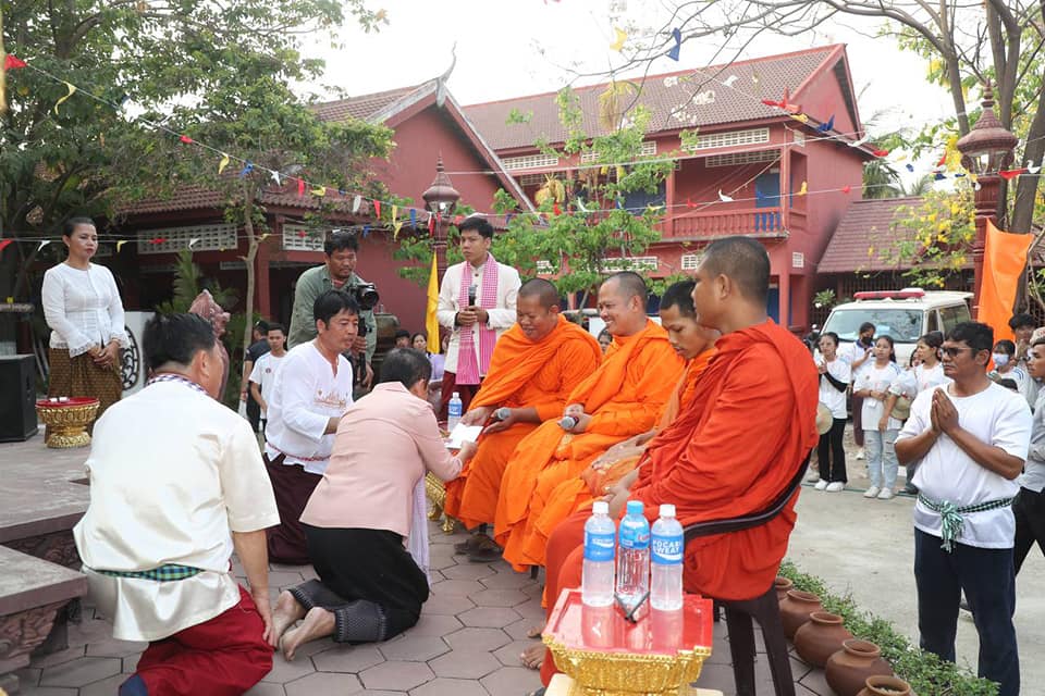 នៅរសៀលថ្ងៃទី២ ខែមេសា ឆ្នាំ២០២៤ និងជាថ្ងៃចុងក្រោយនៃពិធីអបអរសាទរបុណ្យចូលឆ្នាំថ្មីប្រពៃណីជាតិ ដែលរៀបចំសាលាមធ្យមវិចិត្រសិល្ប: លោកជំទាវបណ្ឌិតសភាចារ្យ ភឿង សកុណា អមដំណើរដោយឯកឧត្តម លោកជំទាវជាថ្នាក់ដឹកនាំក្រសួង និងយុវជនសហភាពសហព័ន្ធកម្ពុជាវិស័យវប្បធម៌និងសិល្ប: បានអញ្ជើញចូលរួមពិធីស្រង់ព្រះ មានការអញ្ជើញចូលរួមពីគណ:គ្រប់គ្រងសាលា លោកគ្រូ អ្នកគ្រូ និងសិស្សានុសិស្ស ដោយបានរៀបចំពិធីស្រង់ទឹកជូនព្រឹទ្ធាចារ្យចាស់ៗ ដែលជាសាស្រ្តាចារ្យ វីរសិល្បករ សរុបប្រមាណចំនួន៧០រូប។