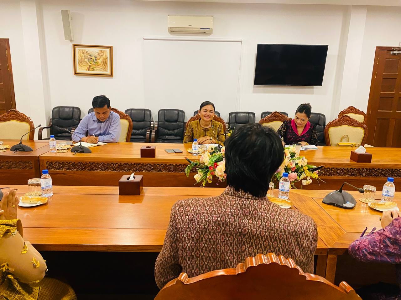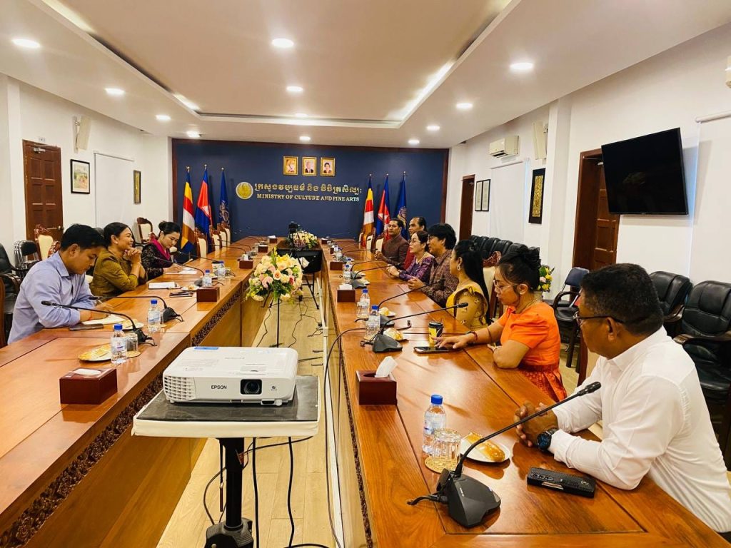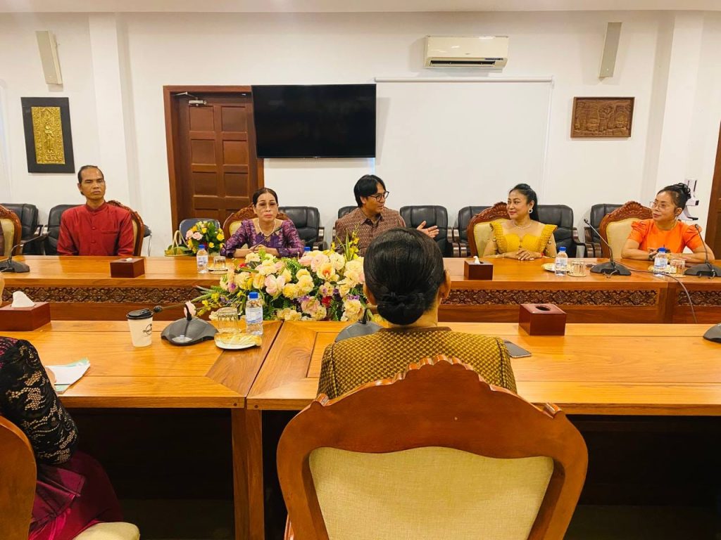 នាព្រឹកថ្ងៃទី០៤ ខែមេសា ឆ្នាំ២០២៤ វេលាម៉ោង០៩:៣០នាទីព្រឹក នៅទីស្តីការក្រសួងវប្បធម៌និងវិចិត្រសិល្បៈ លោកជំទាវ ឡងឌី សាន់ណារ៉ា រដ្ឋលេខាធិការ តំណាងដ៏ខ្ពង់ខ្ពស់លោកជំទាវបណ្ឌិតសភាចារ្យរដ្ឋមន្ត្រី ទទួលជួបលោក ពេជ្រ ចិត្រា និងលោកស្រី ច័ន្ទ ដាវី ស្ថាបនិកកោះស្លាកែតស្ទូឌីយោ ស្ថាបនិកកម្មវិធីគូព្រេងព្រឹទ្ធ និងជាម្ចាស់ផលិតកម្មដាវីត្រាព្រមទាំងក្រុមការងារដើម្បីសម្តែងការគួរសម និងផ្តល់អនុសាសន៍។