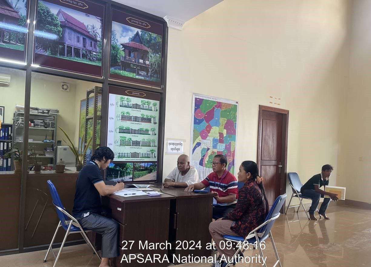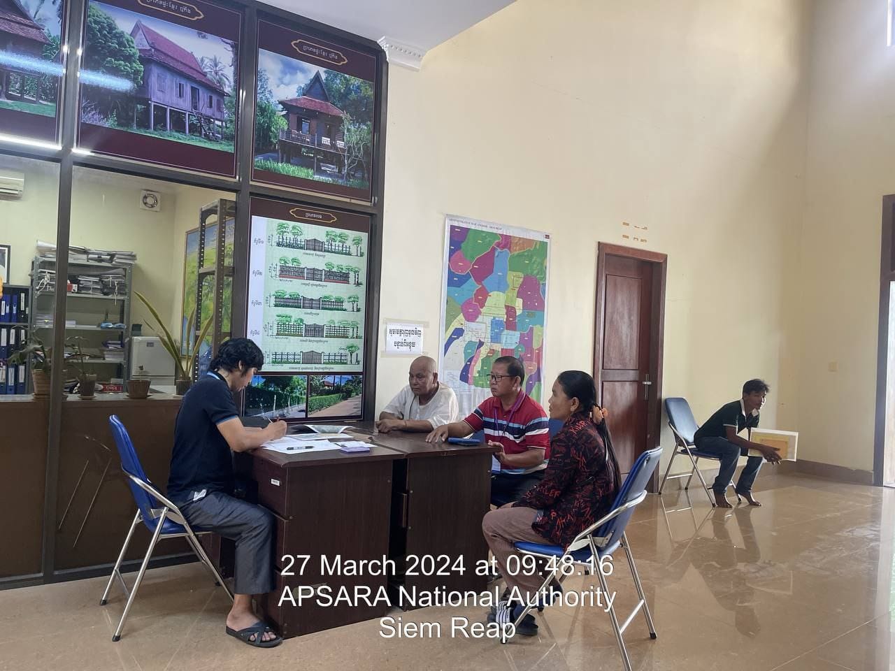 នៅកំឡុងសប្តាហ៍ទី៤ នៃខែមីនា ឆ្នាំ២០២៤កន្លងមកនេះ ក្រុមការងារបច្ចេកទេស នាយកដ្ឋានគ្រប់គ្រងដីធ្លី បេតិកភណ្ឌក្រុង និងសហគមន៍ នៃអាជ្ញាធរជាតិអប្សរា បានចុះពិនិត្យទីតាំងស្នើសុំសាងសង់លំនៅដ្ឋានប្រជាពលរដ្ឋ និងសំណង់សាធារណៈផ្សេងៗ និងអនុញ្ញាតជូនដល់ប្រជាពលរដ្ឋដែលជាអ្នកស្រុកចាស់ចំនួន០៩ករណី។ ប្រជាពលរដ្ឋដែលជាអ្នកស្រុកចាស់ ទទួលបានការអនុញ្ញាតរួមមាន៖