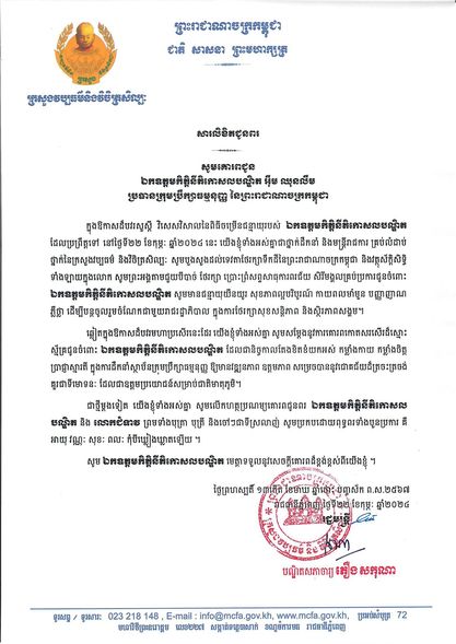 ក្នុងឱកាសដ៏បវរសួស្តី វិសេសវិសាលនៃពិធីចម្រើនជន្មាយុរបស់ ឯកឧត្តមកិត្តិនីតិកោសលបណ្ឌិត ដែលប្រព្រឹត្តទៅ នៅថ្ងៃទី២២ ខែកុម្ភៈ ឆ្នាំ២០២៤ នេះ យើងខ្ញុំទាំងអស់គ្នាជាថ្នាក់ដឹកនាំ និងមន្ត្រីរាជការ គ្រប់លំដាប់ ថ្នាក់នៃក្រសួងវប្បធម៌ និងវិចិត្រសិល្បៈ សូមបួងសួងដល់ទេវតាថែរក្សាទឹកដីនៃព្រះរាជាណាចក្រកម្ពុជា និងវត្ថុស័ក្តិសិទ្ធិ ទាំងឡាយក្នុងលោក សូមព្រះអង្គតាមជួយបីបាច់ ថែរក្សា ប្រោះព្រំសព្ទសាធុការពរជ័យ សិរីមង្គលគ្រប់ប្រការជូនចំពោះ ឯកឧត្តមកិត្តិនីតិកោសលបណ្ឌិត សូមមានជន្មាយុយឺនយូរ សុខភាពល្អបរិបូរណ៍ កាយពលមាំមួន បញ្ញាញាណ ភ្លឺថ្លា ដើម្បីបន្តចូលរួមចំណែកជាមួយរាជរដ្ឋាភិបាល ក្នុងការថែរក្សាសុខសន្តិភាព និងស្ថិរភាពសង្គម។