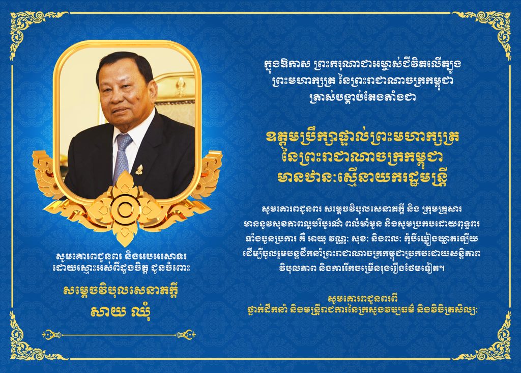 ក្នុងឱកាសដែលត្រូវបាន ព្រះករុណាព្រះបាទសម្តេចព្រះបរមនាថ នរោត្តម សីហមុនី ព្រះមហាក្សត្រ នៃព្រះរាជាណាចក្រកម្ពុជា ត្រាស់បង្គាប់តែងតាំងជា ឧត្តមប្រឹក្សាផ្ទាល់ព្រះមហាក្សត្រ នៃព្រះរាជាណាចក្រកម្ពុជា មានឋានៈស្មើនាយករដ្ឋមន្ត្រី។