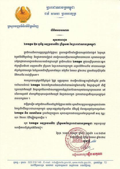សារលិខិតអបអរសាទរ របស់លោកជំទាវបណ្ឌិតសភាចារ្យ រដ្ឋមន្ត្រី ព្រមទាំងថ្នាក់ដឹកនាំ និងមន្ត្រីរាជការនៃក្រសួងវប្បធម៌និងវិចិត្រសិល្បៈ សូមគោរពជូន ឯកឧត្តម អ៊ុច បូររិទ្ធ ក្នុងឱកាសដែលត្រូវបានព្រឹទ្ធសភាបោះឆ្នោតគាំទ្រជ្រើសរើសជាអនុប្រធានទី២ ព្រឹទ្ធសភា នៃព្រះរាជាណាចក្រកម្ពុជា សម្រាប់ នីតិកាលទី៥ ដោយមានសំឡេងគាំទ្រចំនួន៦២សំឡេងនៃចំនួនសមាជិកព្រឹទ្ធសភាទាំងមូល នាថ្ងៃទី៣ ខែមេសា ឆ្នាំ២០២៤ ក្នុងសម័យប្រជុំដំបូងនៃនីតិកាលទី៥ របស់ព្រឹទ្ធសភា។