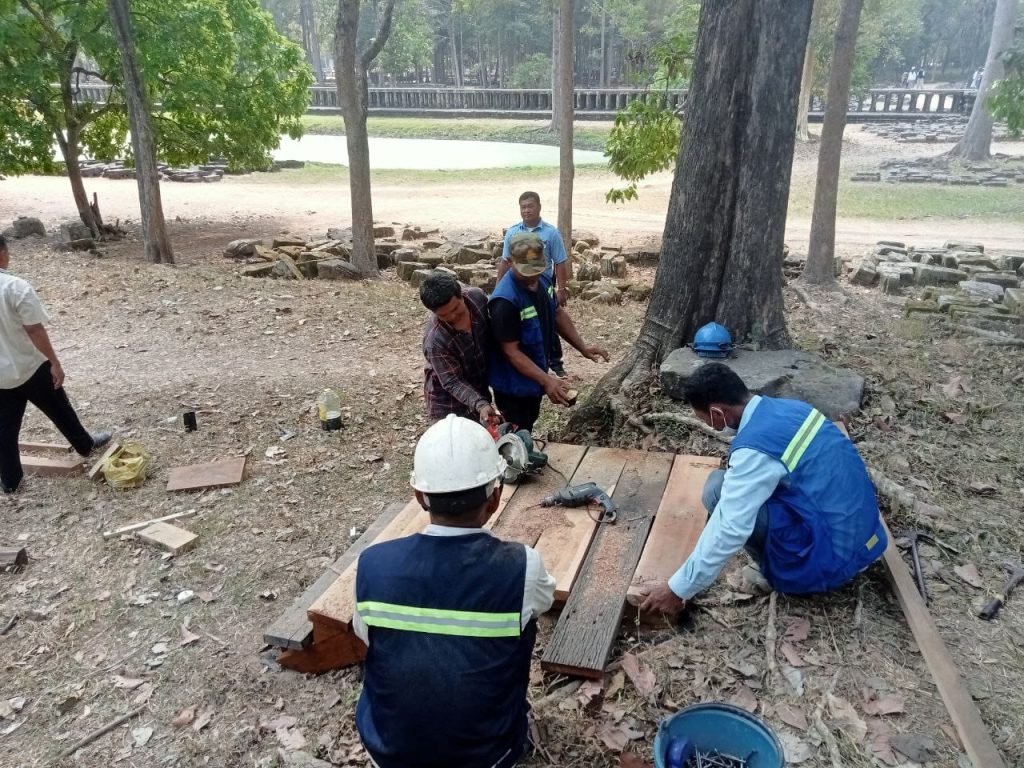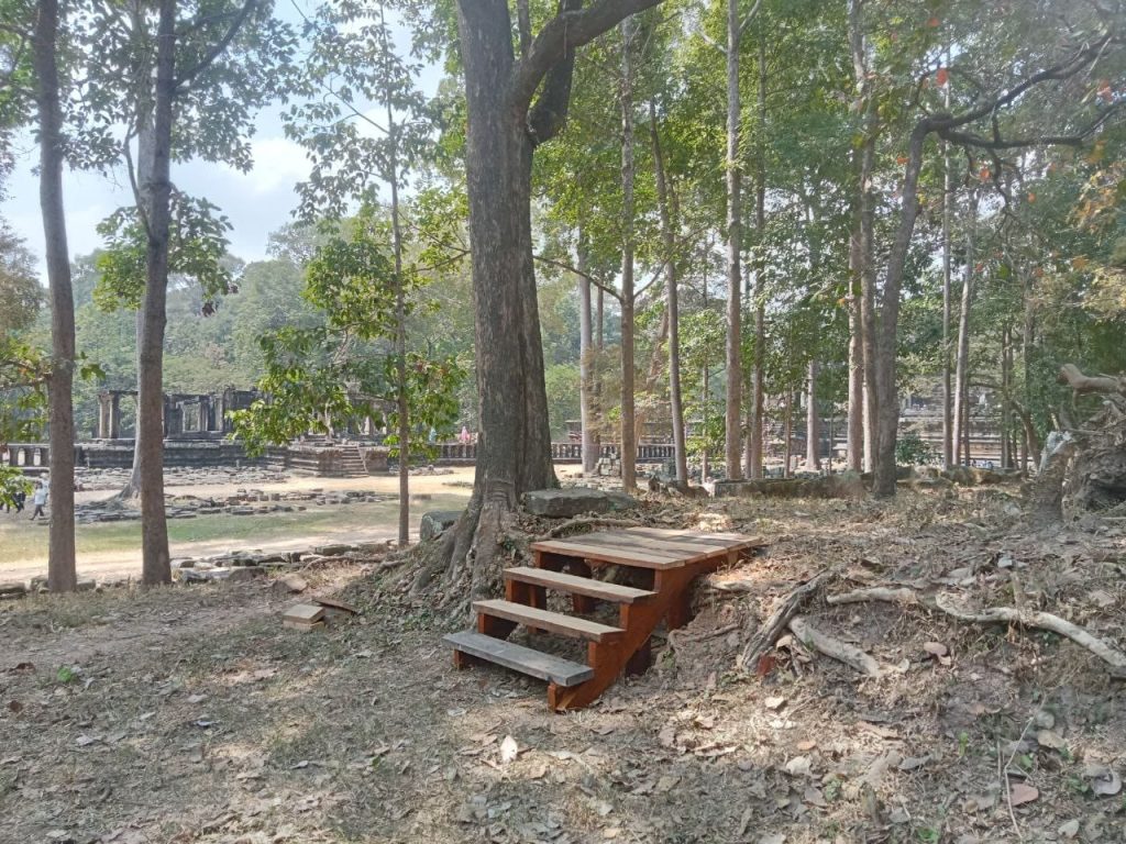 ការដំឡើងជណ្តើរឈើនេះដែរ ក៏ដើម្បីសម្រួលឱ្យភ្ញៀវទេសចរចូលទស្សនាក្នុងរាជវាំងចាស់បានស្រួល ការពារការដើរទាក់ជើងនិងឫសឈើ ក៏ដូចជាជួយការពារឬសឈើ និងកាត់បន្ថយការដើរជាន់ដុំថ្ម ព្រមទាំងរូបចម្លាក់ផ្សេងៗនៅលើកំពែងនេះផង៕