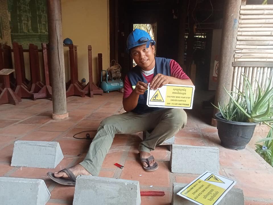 លោក ប៊ូ ផានេត ប្រធានក្រុមការងាររៀបចំស្លាកសញ្ញាហានិភ័យ ឱ្យដឹងថា ក្រុមការងារបានចុះទៅពិនិត្យទីតាំងមួយចំនួន ដែលអាចនឹងធ្វើឱ្យភ្ញៀវទេសចរគ្រោះថ្នាក់ដូចជា ដើរដួល ដើរផុតថ្ម ដើរចូលកន្លែងទាបជាដើម។ ដើម្បីបញ្ចៀសនូវគ្រោះថ្នាក់ផ្សេងៗជាយថាហេតុ ទើបក្រុមការងាររៀបចំដាក់ស្លាកសញ្ញានៅតាមចំណុចហានិភ័យខ្ពស់ទាំងនោះ បំណងប្រាប់ដល់ភ្ញៀវជាតិ-អន្តរជាតិ ឱ្យបានដឹងជាមុន និងប្រុងប្រយ័ត្នខ្ពស់ ក្នុងពេលកំពុងដើរទស្សនា។